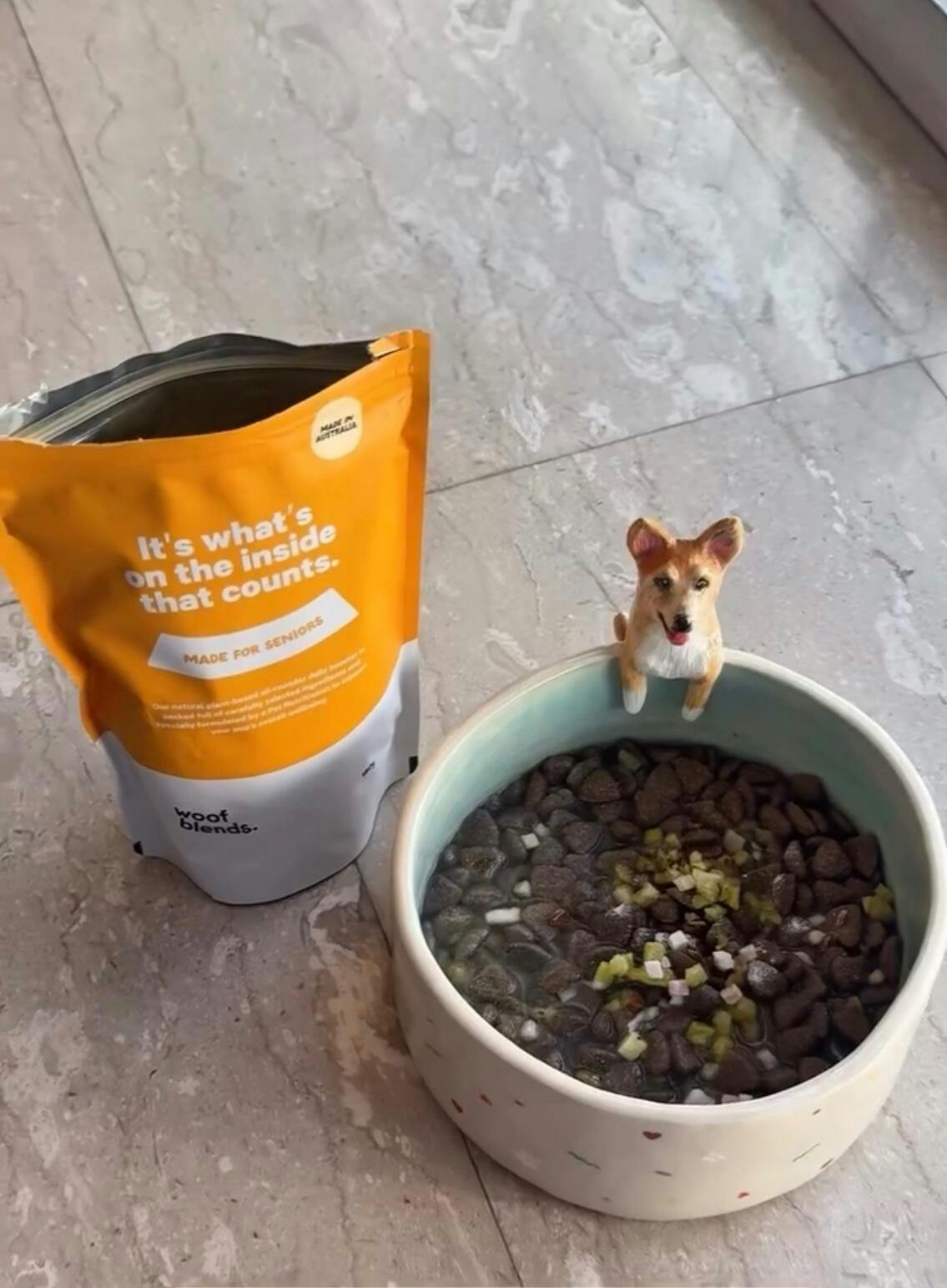 Mix Woof Blends’ Senior Wellness blend to any raw or cooked food to create a wholesome meal.